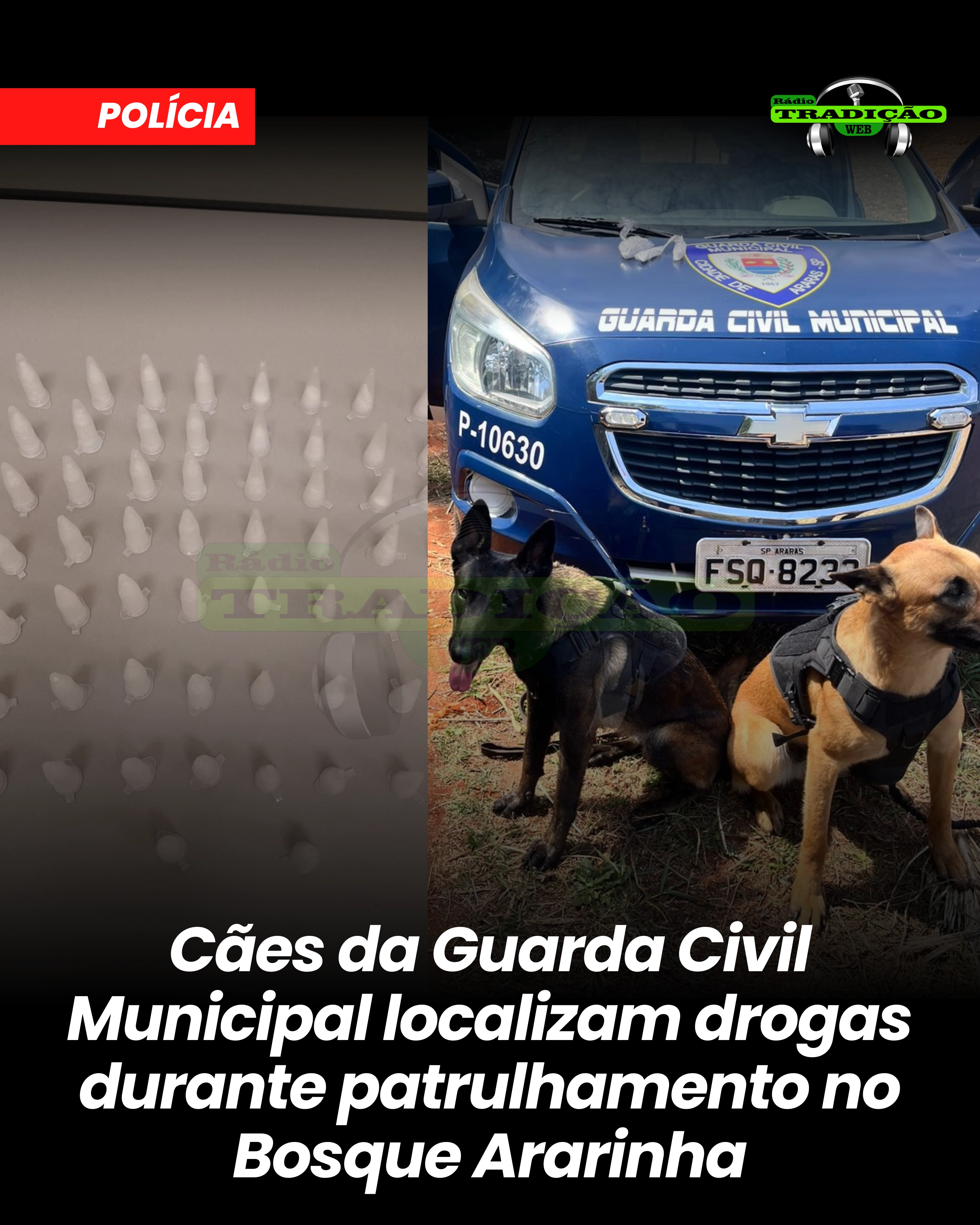 Com o apoio dos cães da corporação, que ainda estão em fase de treinamento, foram realizadas buscas pelo local. Os animais conseguiram localizar três pacotes contendo pinos de cocaína, reforçando a eficácia do trabalho que vem sendo desenvolvido pelo canil da GCM.
