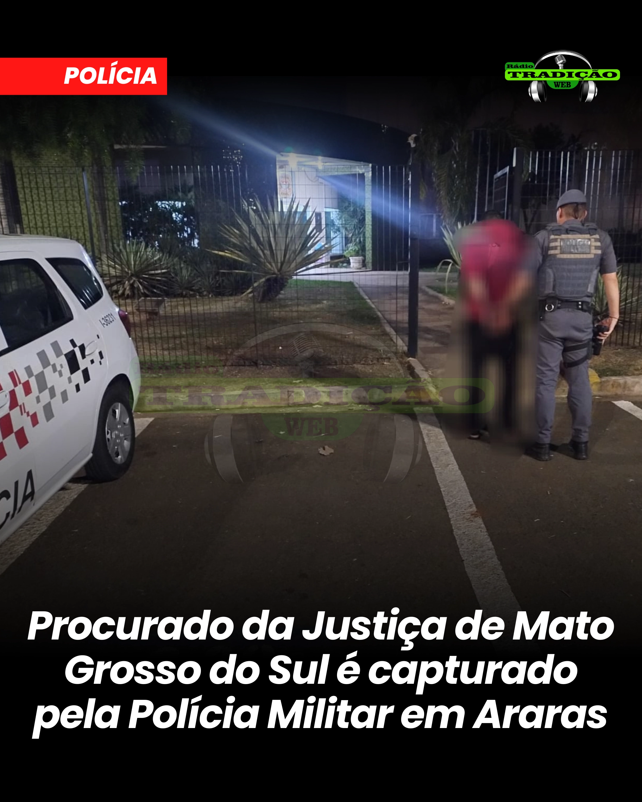 Na noite deste domingo (7), a Polícia Militar prendeu um homem procurado pela Justiça do Mato Grosso do Sul durante a Operação Impacto, realizada em Araras (SP). A captura aconteceu por volta das 22h, na Rua Antônio Alves, no bairro Parque Tiradentes.