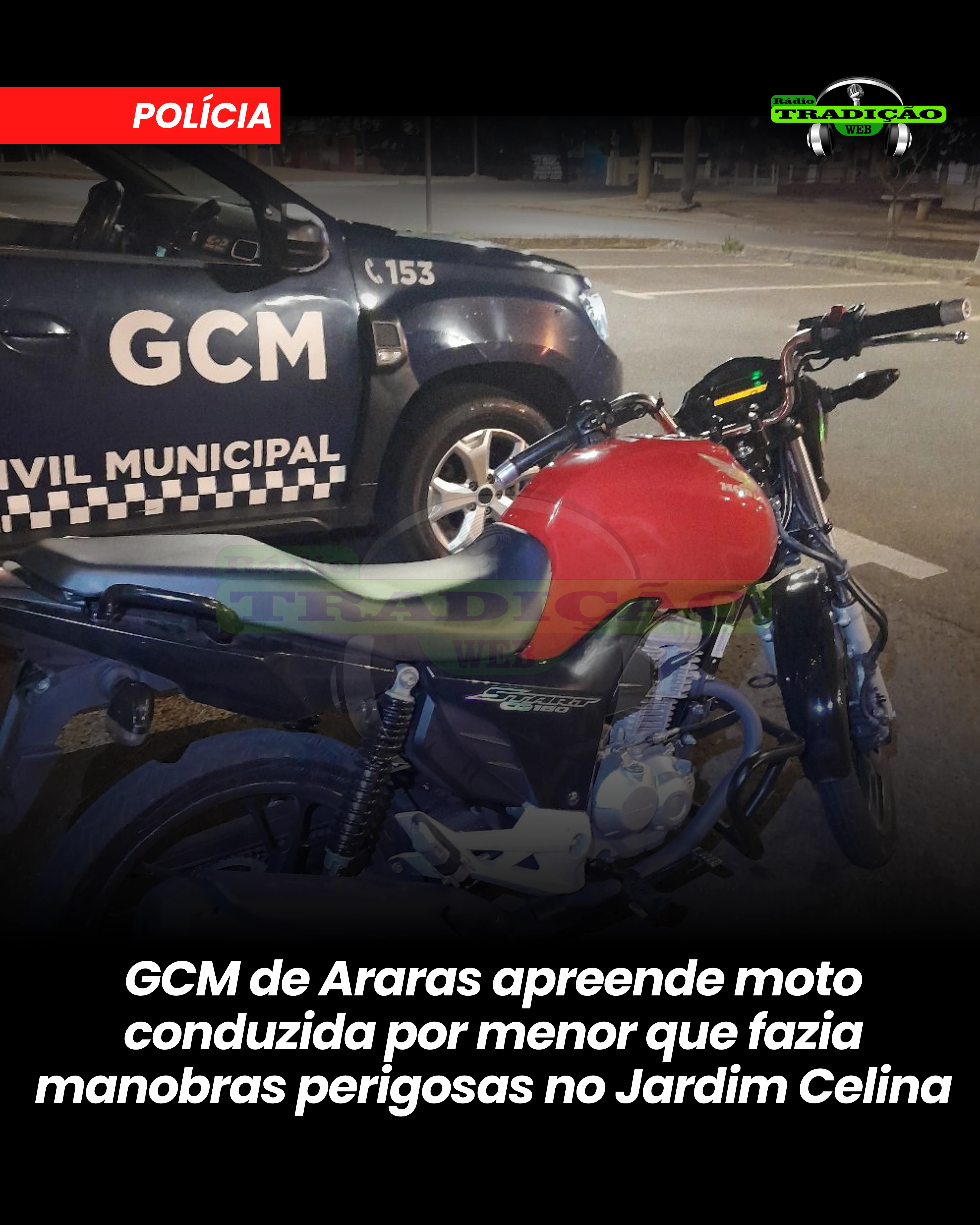 Na madrugada desta segunda-feira (22), a Guarda Civil Municipal de Araras (SP), por meio da equipe especializada de ROMU, apreendeu uma motocicleta conduzida por um adolescente que realizava manobras perigosas em via pública, no bairro Jardim Celina, zona leste da cidade.