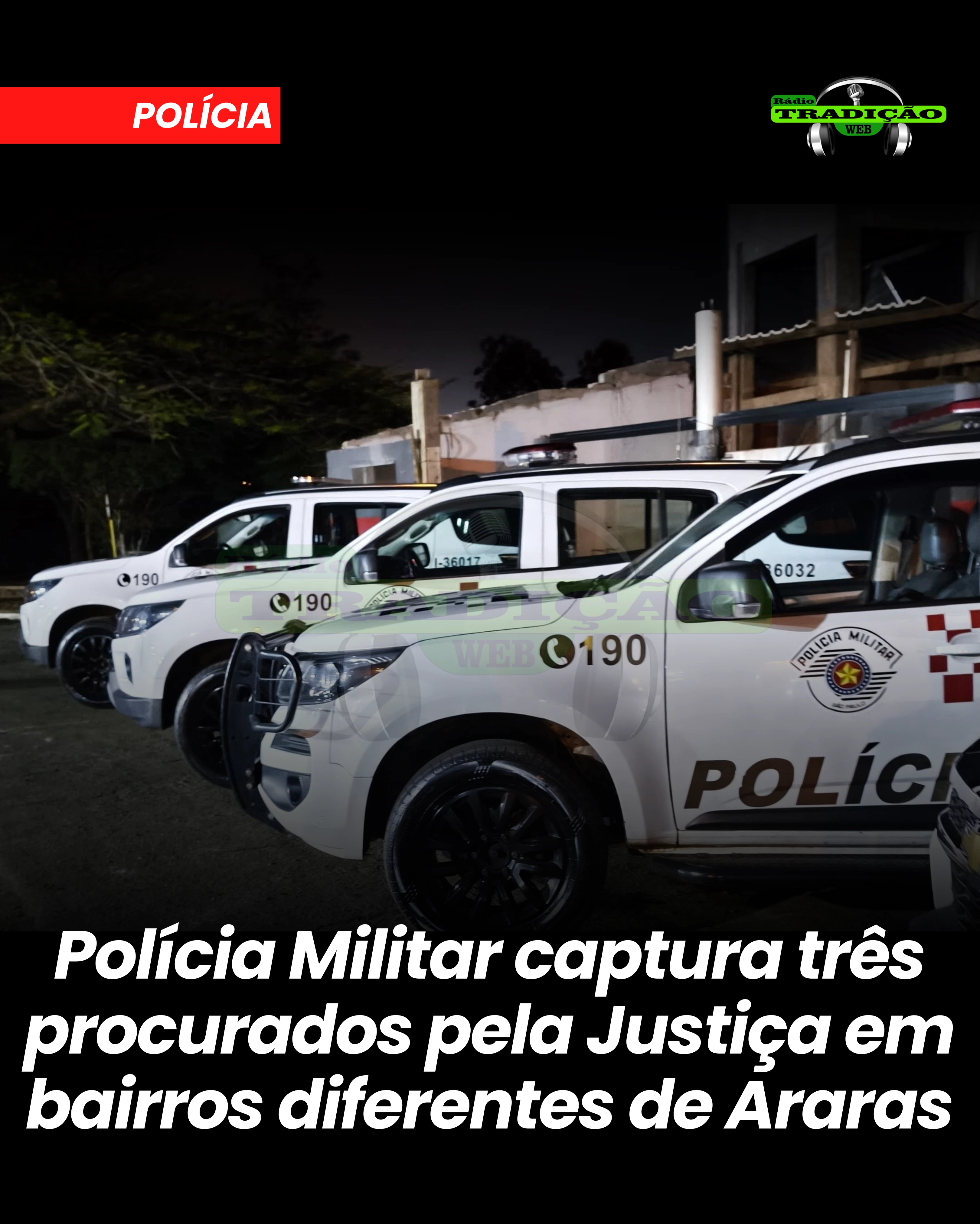 Segundo a corporação, os suspeitos possuíam mandados de prisão expedidos pela Justiça e, após serem localizados, receberam voz de prisão. Todos foram conduzidos ao Plantão Policial de Araras, onde permaneceram à disposição do Poder Judiciário.