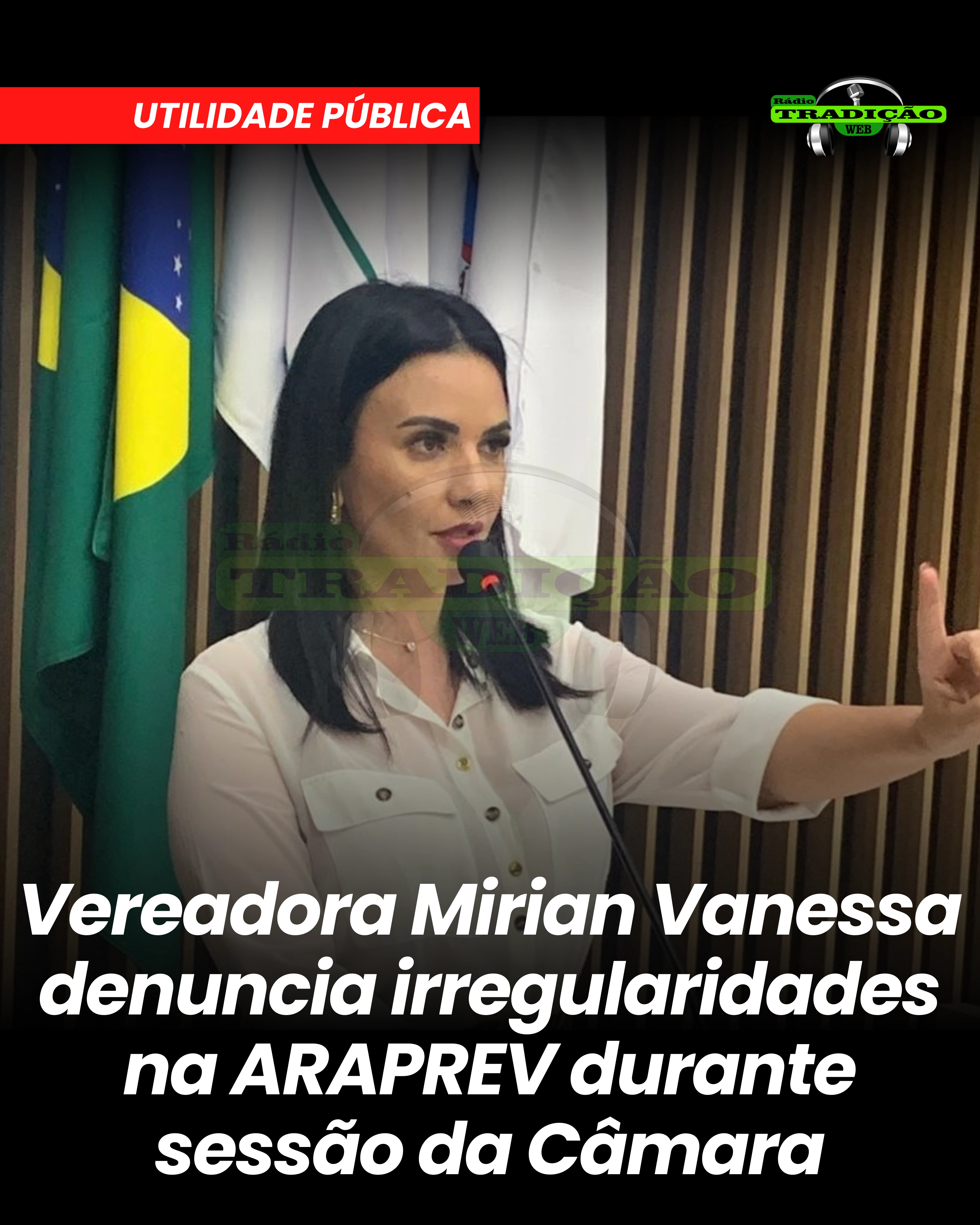Na sessão da Câmara Municipal, a vereadora Mirian Vanessa levantou um alerta sobre o recente julgamento do Tribunal de Contas do Estado, que considerou irregulares as contas de 2023 do Serviço de Previdência Social do Município de Araras – ARAPREV, sob responsabilidade do gestor anterior, aplicando multa de 160 UFESPs.