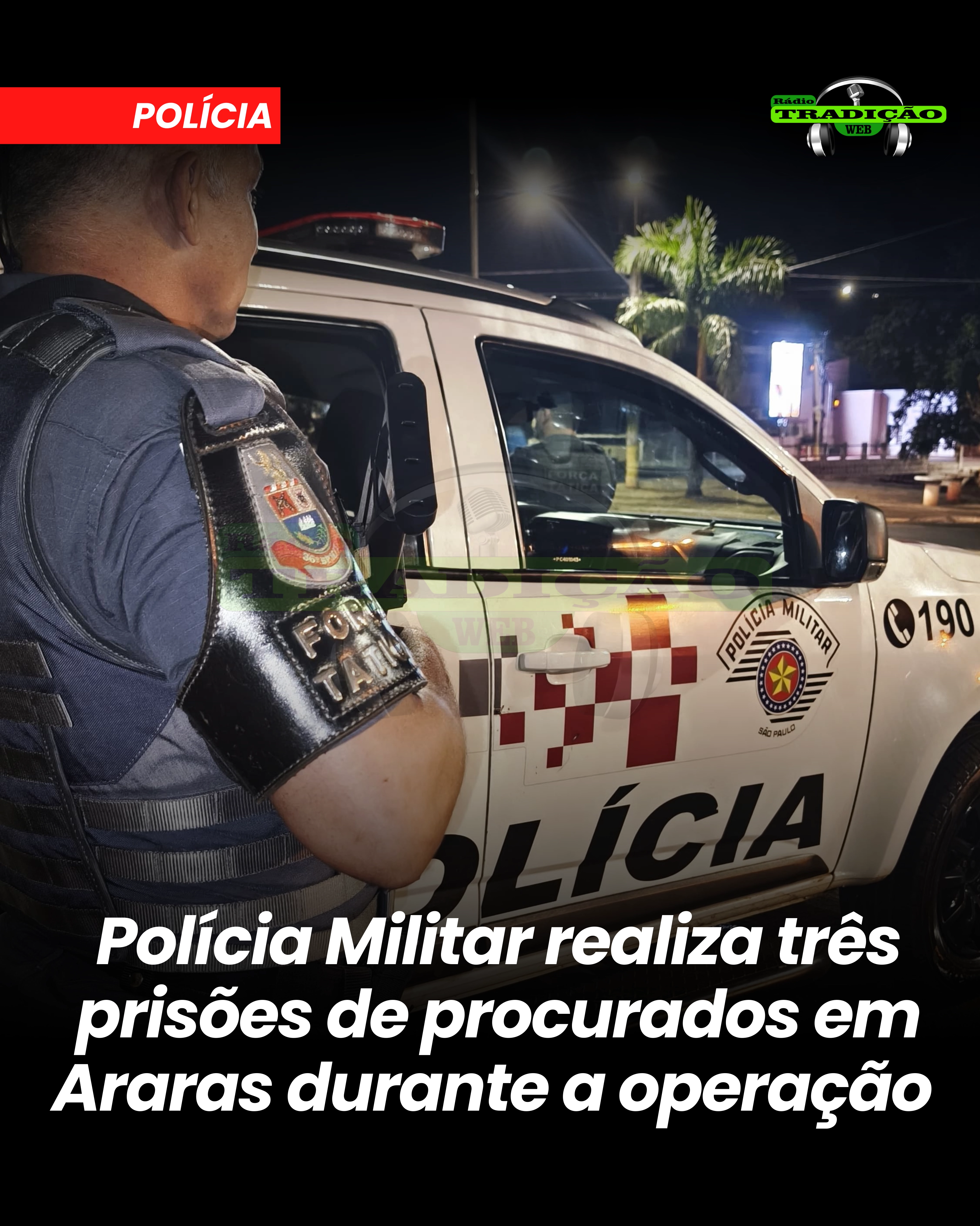 A Polícia Militar de Araras registrou, em diferentes datas da Operação Impacto, três prisões de indivíduos procurados pela Justiça. As ações ocorreram em distintos bairros da cidade e resultaram na captura de dois homens e uma mulher condenada.