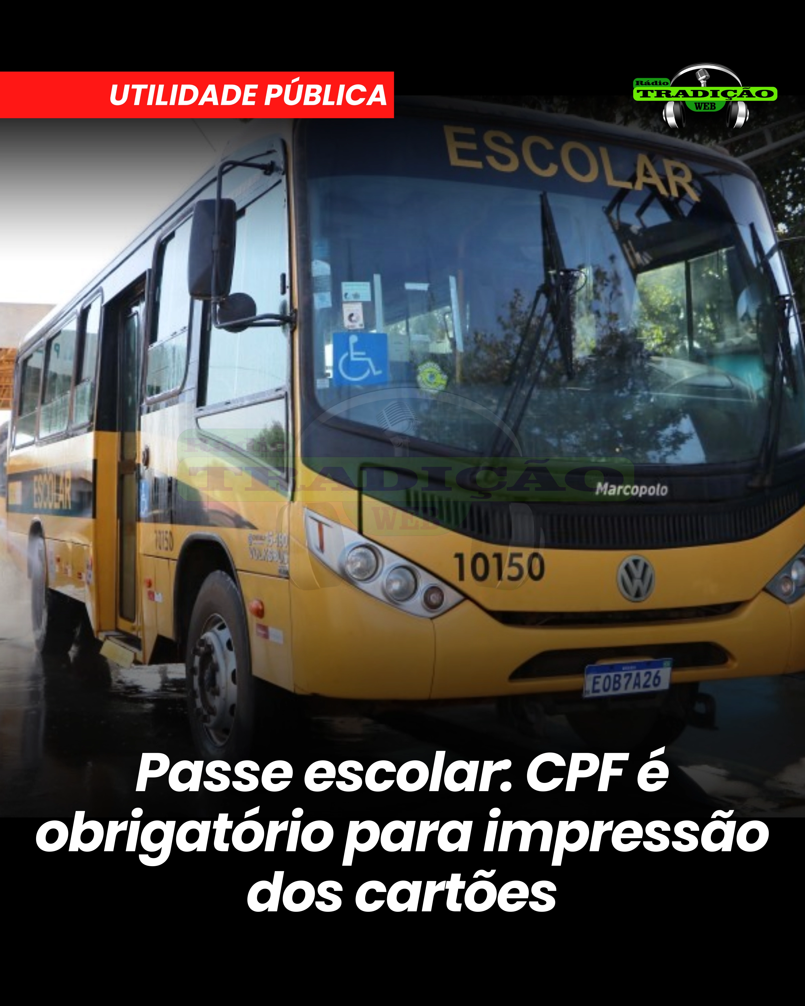 A Secretaria Municipal de Educação de Araras informa que para a impressão dos cartões do passe escolar, a partir de agora, será obrigatória a apresentação do CPF (Cadastro de Pessoas Físicas) dos estudantes; por esse motivo, os usuários do serviço de transporte escolar da cidade, que ainda não possuem o documento, precisam fazer a solicitação o mais breve possível.