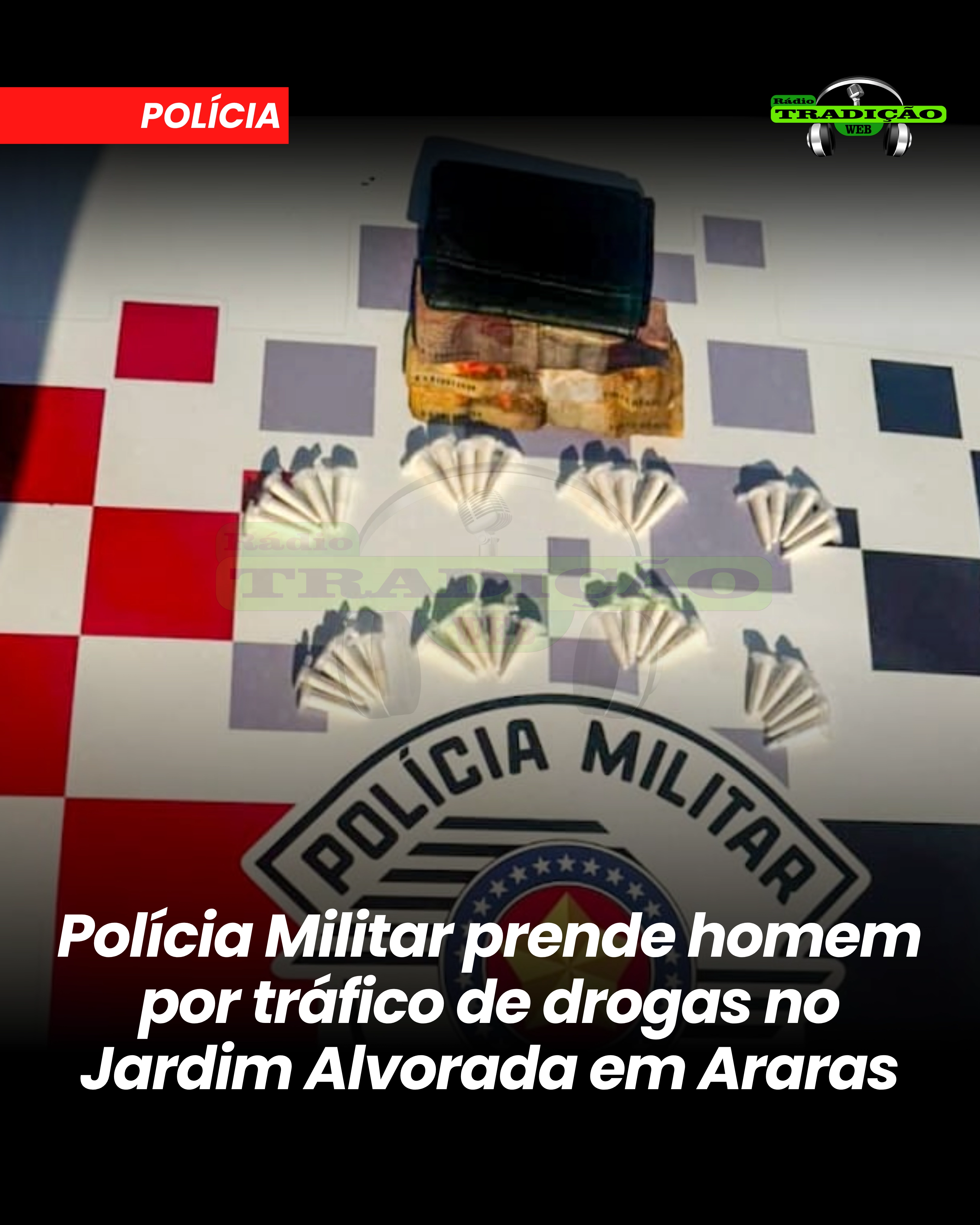 Na tarde de terça-feira (30), a Polícia Militar prendeu um homem em flagrante por tráfico de drogas na Rua Antônio de Luca, no Jardim Alvorada, em Araras (SP).