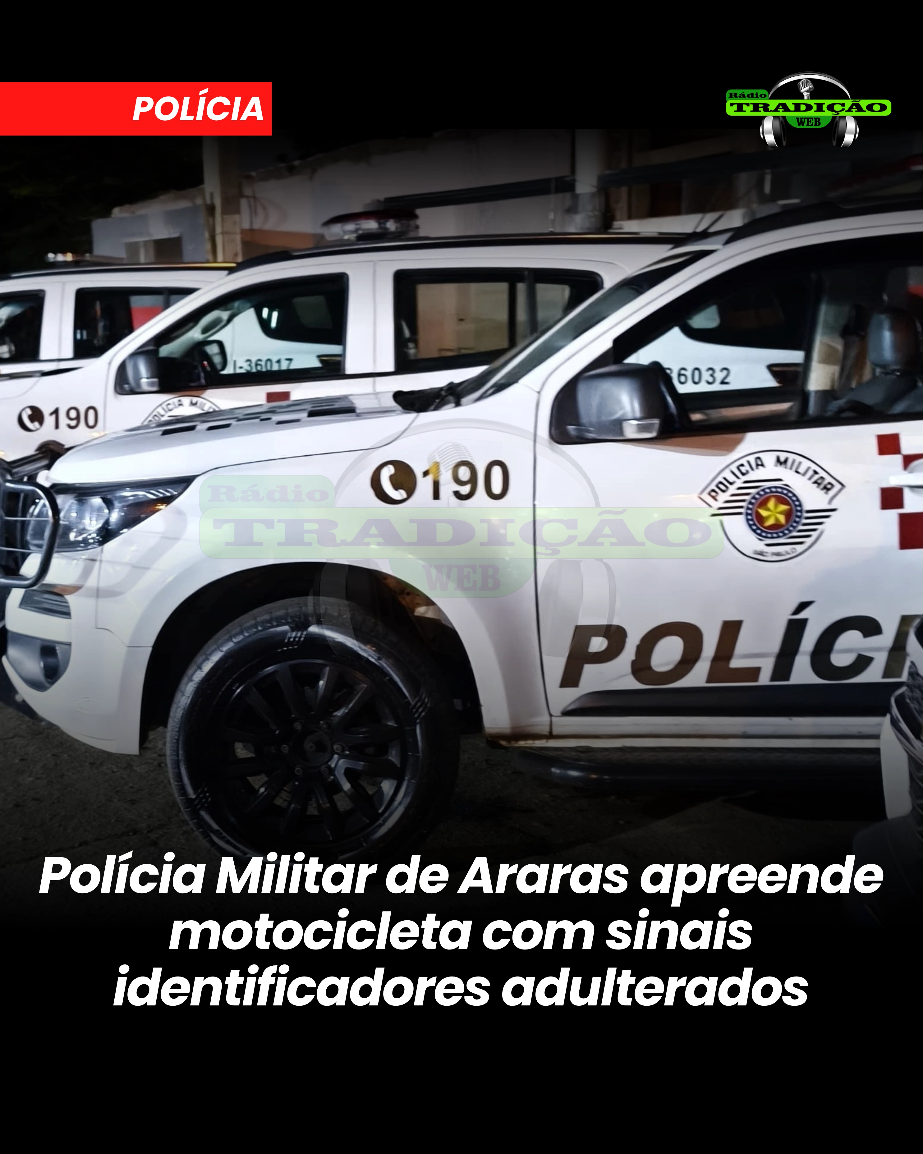 Na tarde de sexta-feira (04/10), durante patrulhamento pela Avenida Dona Renata, em Santa Elisa, a Polícia Militar de Araras abordou uma motocicleta suspeita que adentrou a Avenida Oswaldo Menegazzo. A abordagem não encontrou ilícitos com o condutor, mas uma vistoria detalhada revelou a supressão de caracteres no chassi do veículo.