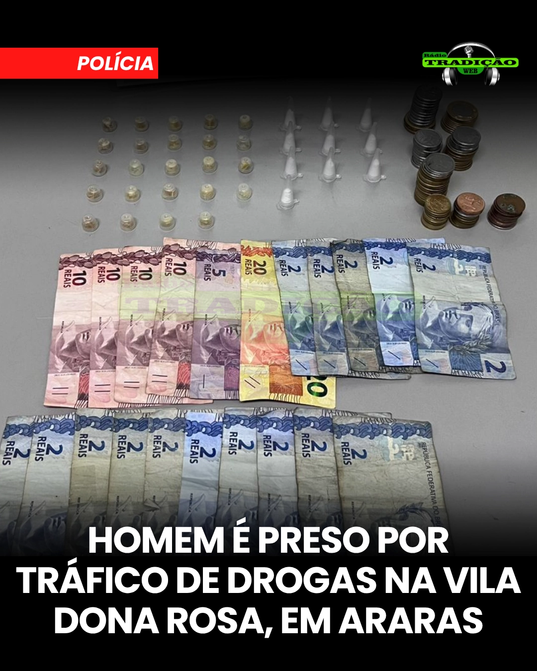 Durante a madrugada desta quarta-feira (12), a Polícia Militar prendeu um homem por tráfico de drogas na Rua Adolfo Matiensen, no bairro Vila Dona Rosa, em Araras (SP). A ação ocorreu durante a Operação Impacto, que visa o combate ao tráfico e aumento da sensação de segurança na região.
