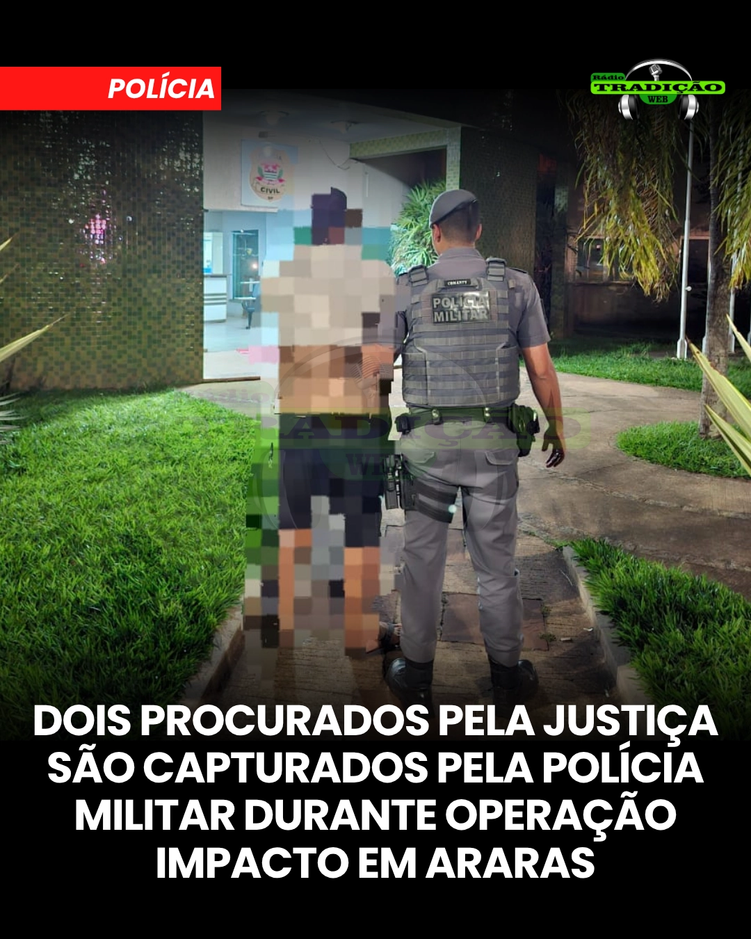 A Polícia Militar de Araras realizou a captura de dois procurados pela Justiça em ações distintas da Operação Impacto, reforçando o combate à criminalidade e a execução de mandados judiciais na cidade. As ocorrências foram registradas nos bairros Vida Nova Araras e Narciso Gomes, ambas envolvendo indivíduos condenados ou com mandados de prisão em aberto.
