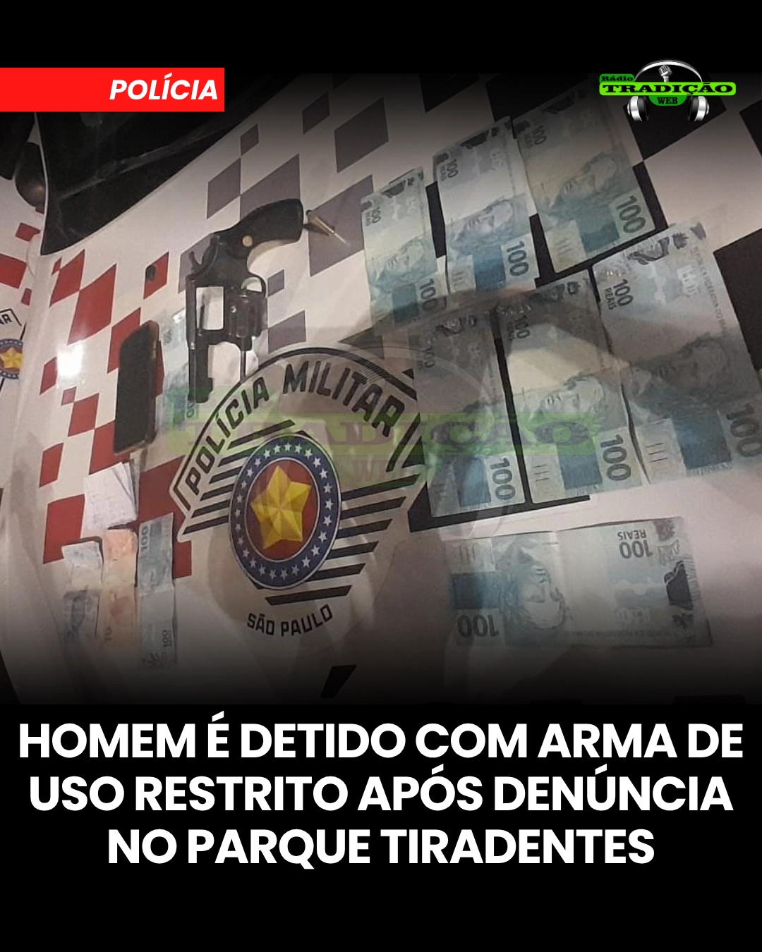 A Polícia Militar prendeu um homem por porte ilegal de arma de fogo de uso restrito na noite de quinta-feira (14), durante a Operação Impacto, no bairro Parque Tiradentes, em Araras. A ocorrência foi irradiada via COPOM após denúncia de que um casal estaria em desentendimento dentro de um veículo preto SpaceFox. Diante das informações, a equipe Alpha realizou patrulhamento e localizou o automóvel estacionado na Avenida Orpheu Manenti, próximo à Rua Ardoino Zaniboni, onde estavam dois indivíduos.