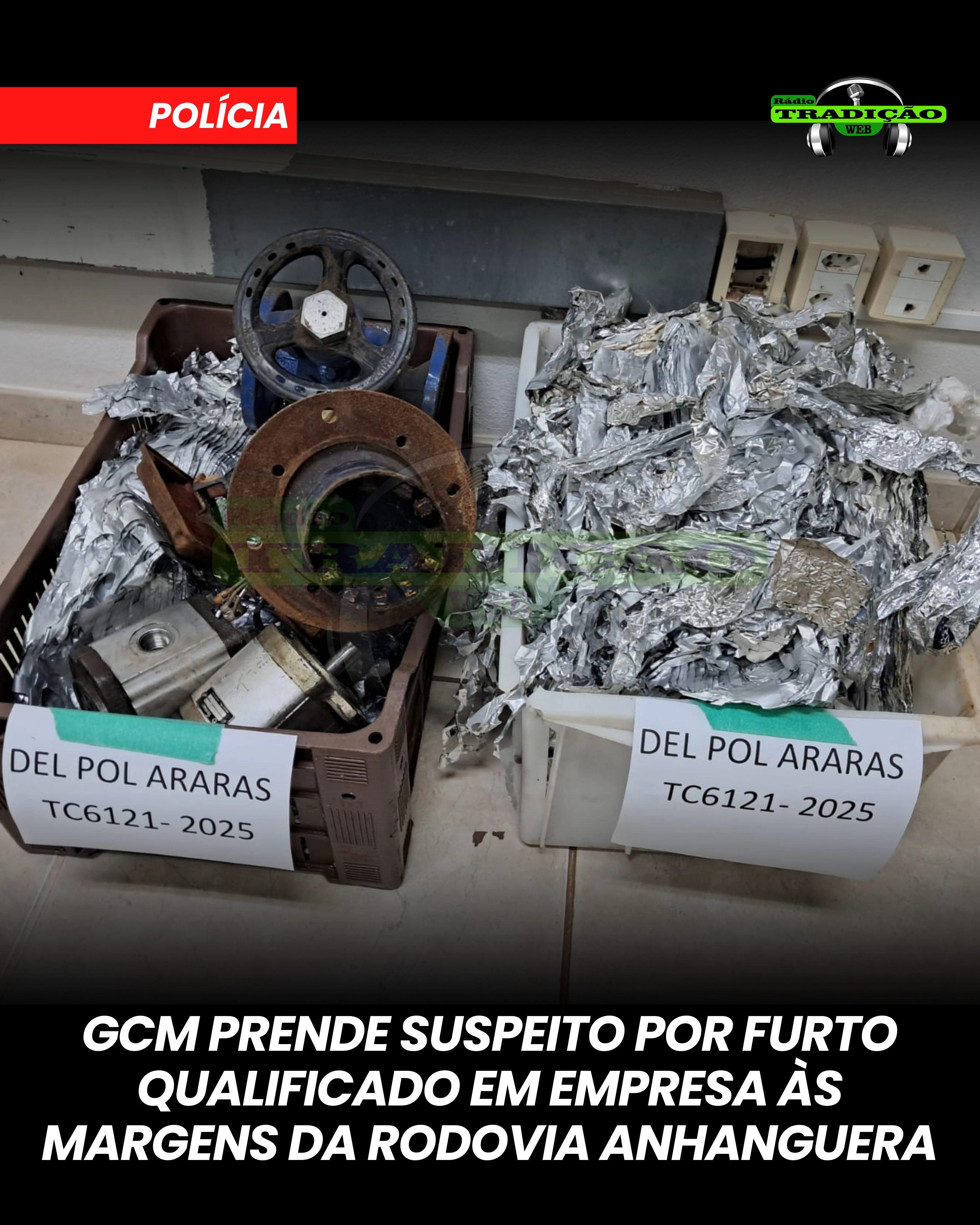 A Guarda Civil Municipal de Araras prendeu, na noite de terça-feira (31), um homem em flagrante por furto consumado qualificado em uma empresa localizada às margens da Rodovia Anhanguera, na altura do km 167, em uma estrada rural nos fundos do local.