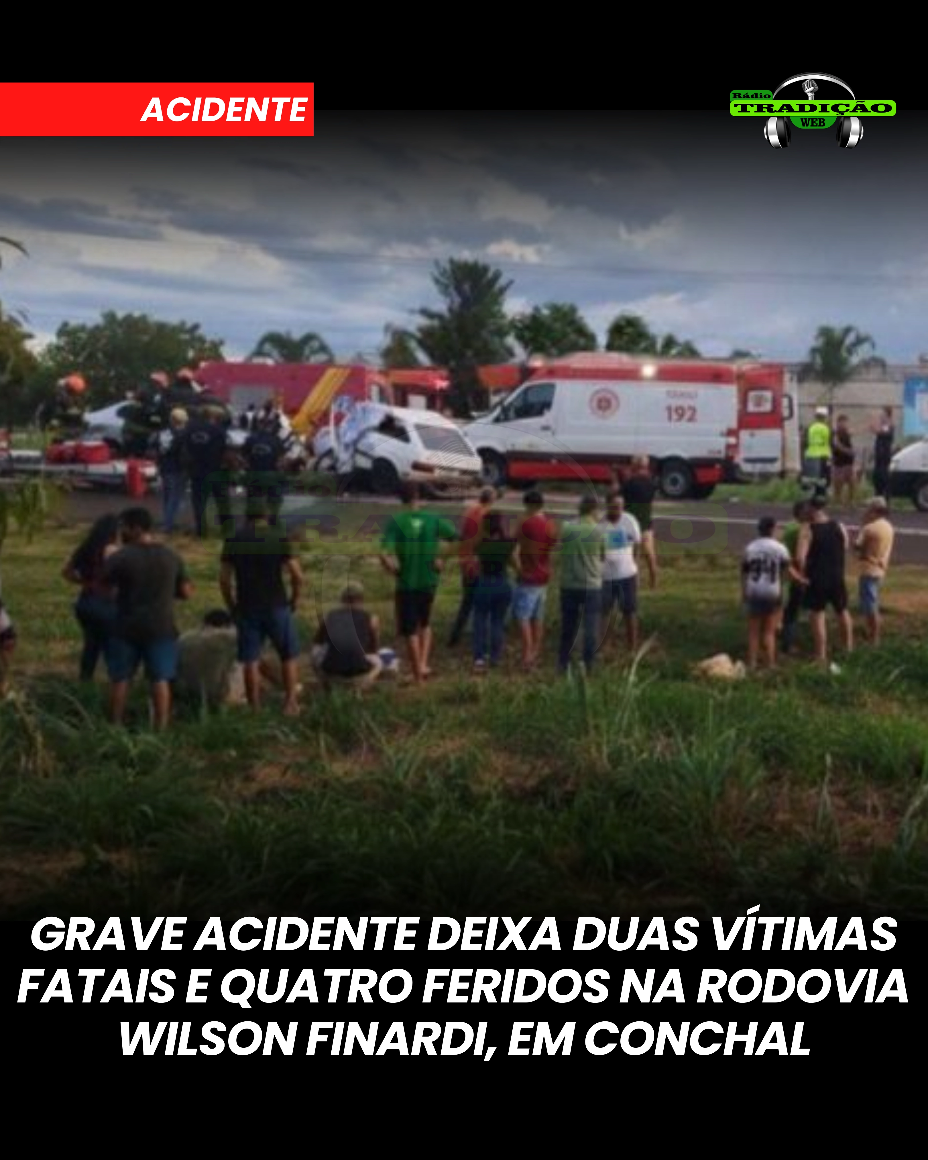 Um grave acidente foi registrado na tarde deste sábado (10) na rodovia Wilson Finardi (SP-191), na altura do km 22, em Conchal (SP). A ocorrência envolveu uma colisão frontal entre dois veículos e resultou em duas vítimas fatais, uma faleceu no local e a outra vítima não resistiu aos ferimentos e morreu pouco tempo após o atendimento. Além de, quatro pessoas gravemente feridas.