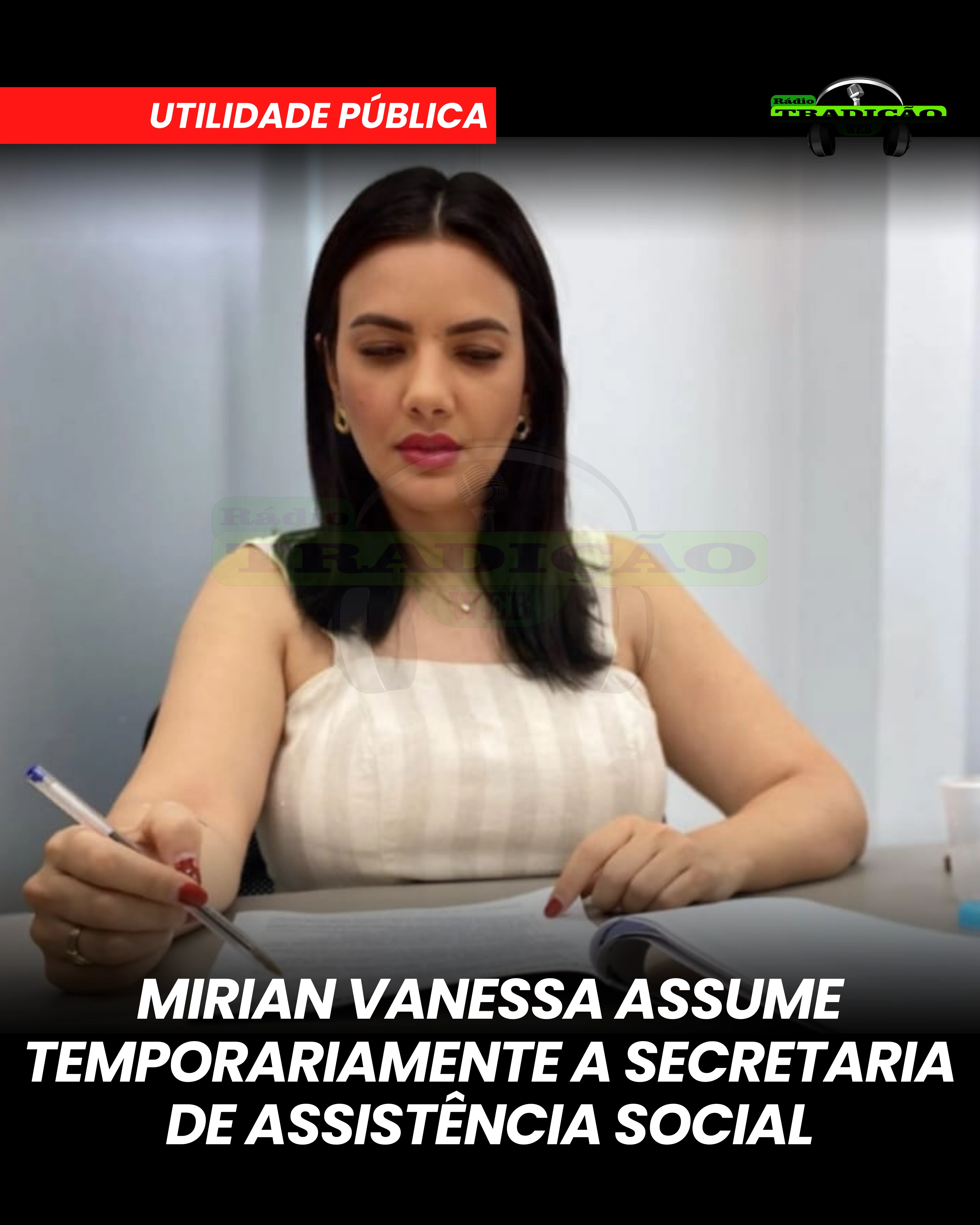 A vereadora Mirian Vanessa, reeleita nas eleições municipais de 2024 e atual vice-presidente da Câmara Municipal, assumirá temporariamente a Secretaria Municipal de Assistência Social a partir desta quinta-feira (15). A mudança ocorre após o pedido de exoneração de Laura Botezelli, que até então respondia pela pasta.