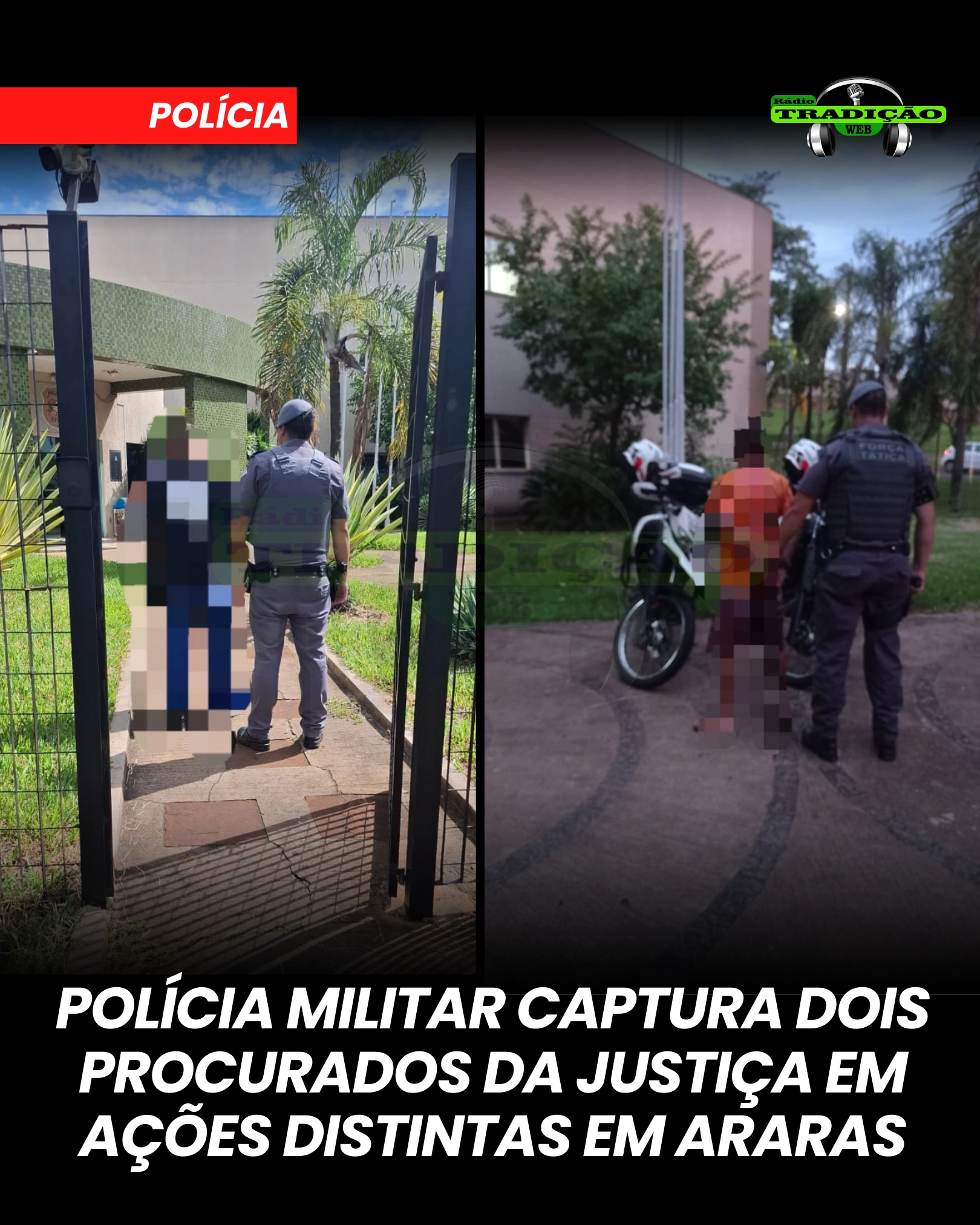 A Polícia Militar do Estado de São Paulo realizou, na terça-feira (14), duas prisões de indivíduos procurados pela Justiça em Araras (SP), em ações distintas durante a Operação Impacto. As ocorrências envolveram equipes da ROCAM, Força Tática e Pelotão Bravo do 36º BPM/I, reforçando o combate à criminalidade e o cumprimento de mandados judiciais no município.