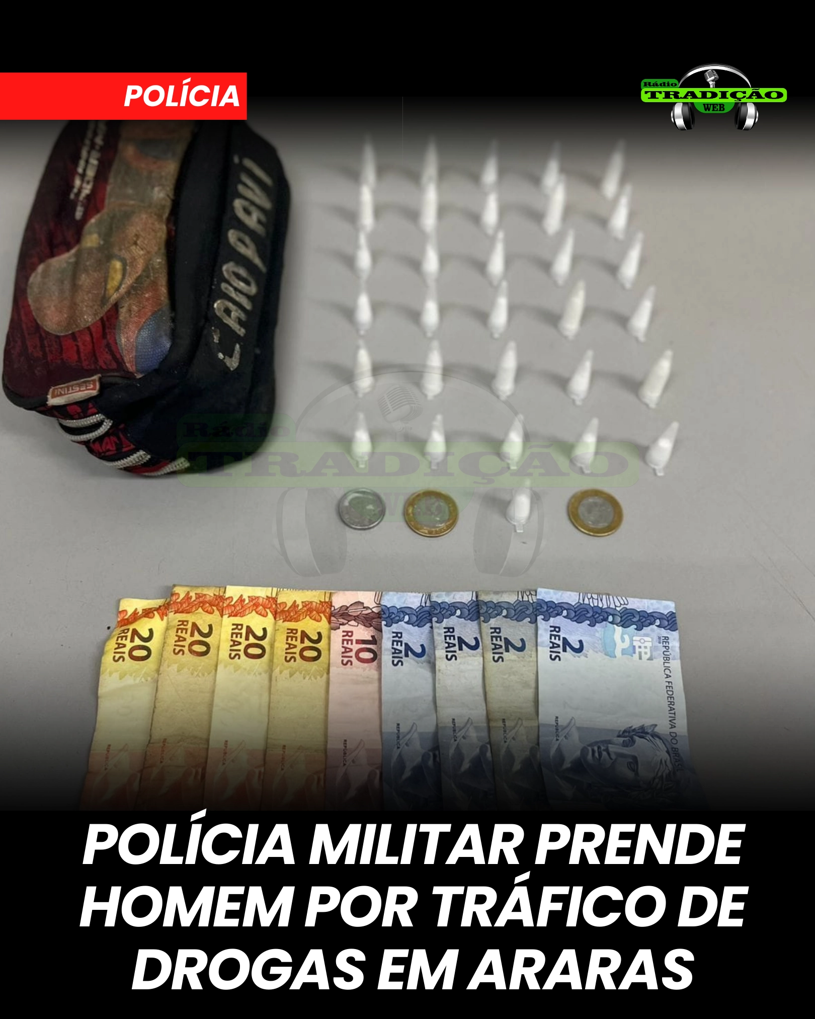 A Polícia Militar do Estado de São Paulo prendeu um homem maior de idade por tráfico de drogas na noite de terça-feira (14), durante a Operação Impacto, no Jardim José Ometto, em Araras. A ação foi realizada por equipes da 2ª Companhia do 36º BPM/I, após atitude suspeita do indivíduo em via pública.