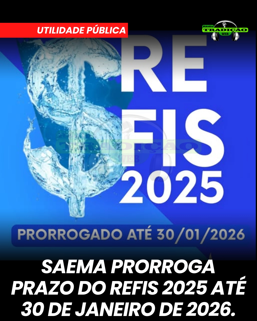 O Serviço de Água e Esgoto do Município de Araras (SAEMA) prorrogou o prazo de adesão ao Refis 2025 (Programa de Recuperação de Créditos). Inicialmente previsto para terminar nesta quarta-feira (10), o período foi estendido até o dia 30 de janeiro de 2026.