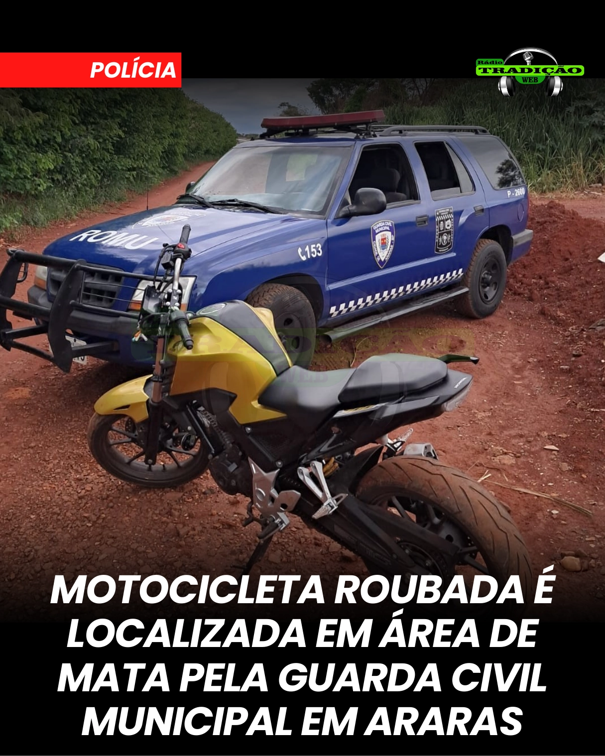Motocicleta roubada é localizada em área de mata pela Guarda Civil Mu...